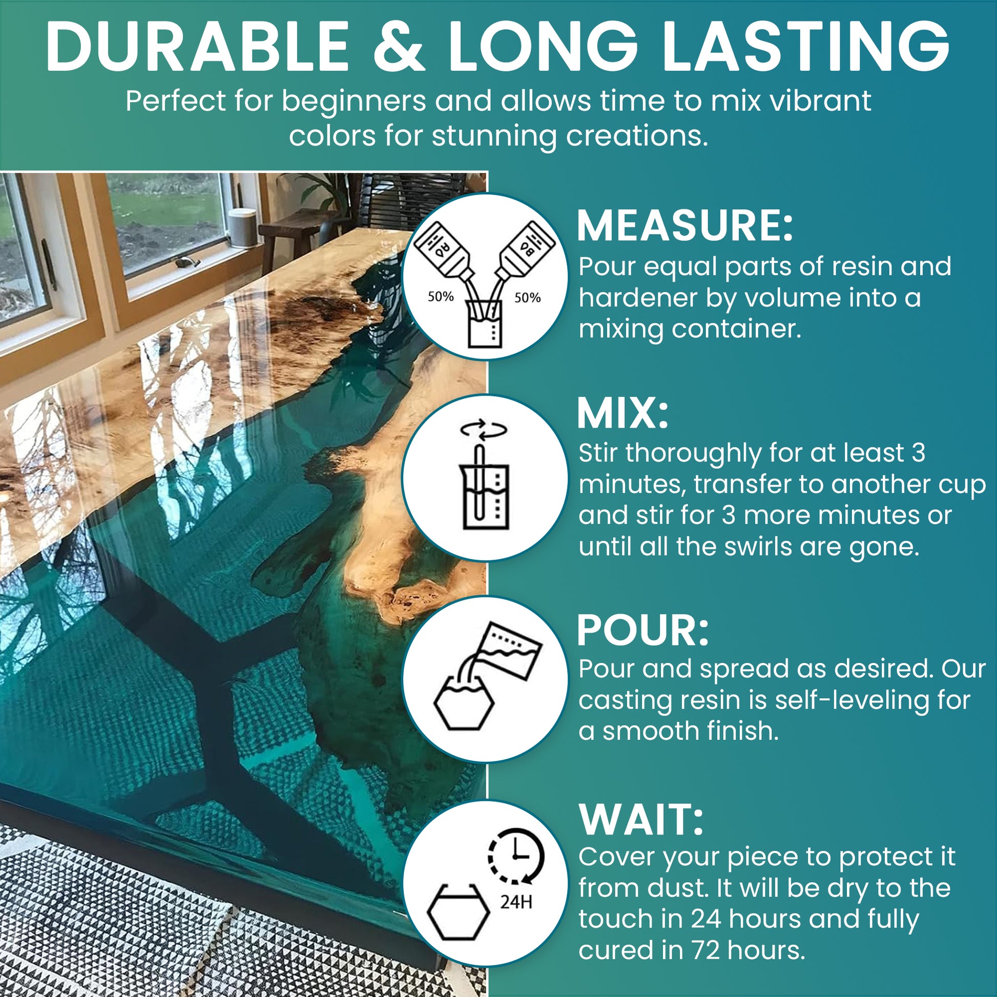 of crystal-clear, low-odor casting resin – perfect for preserving florals, trays, and molds up to 1 inch deep.