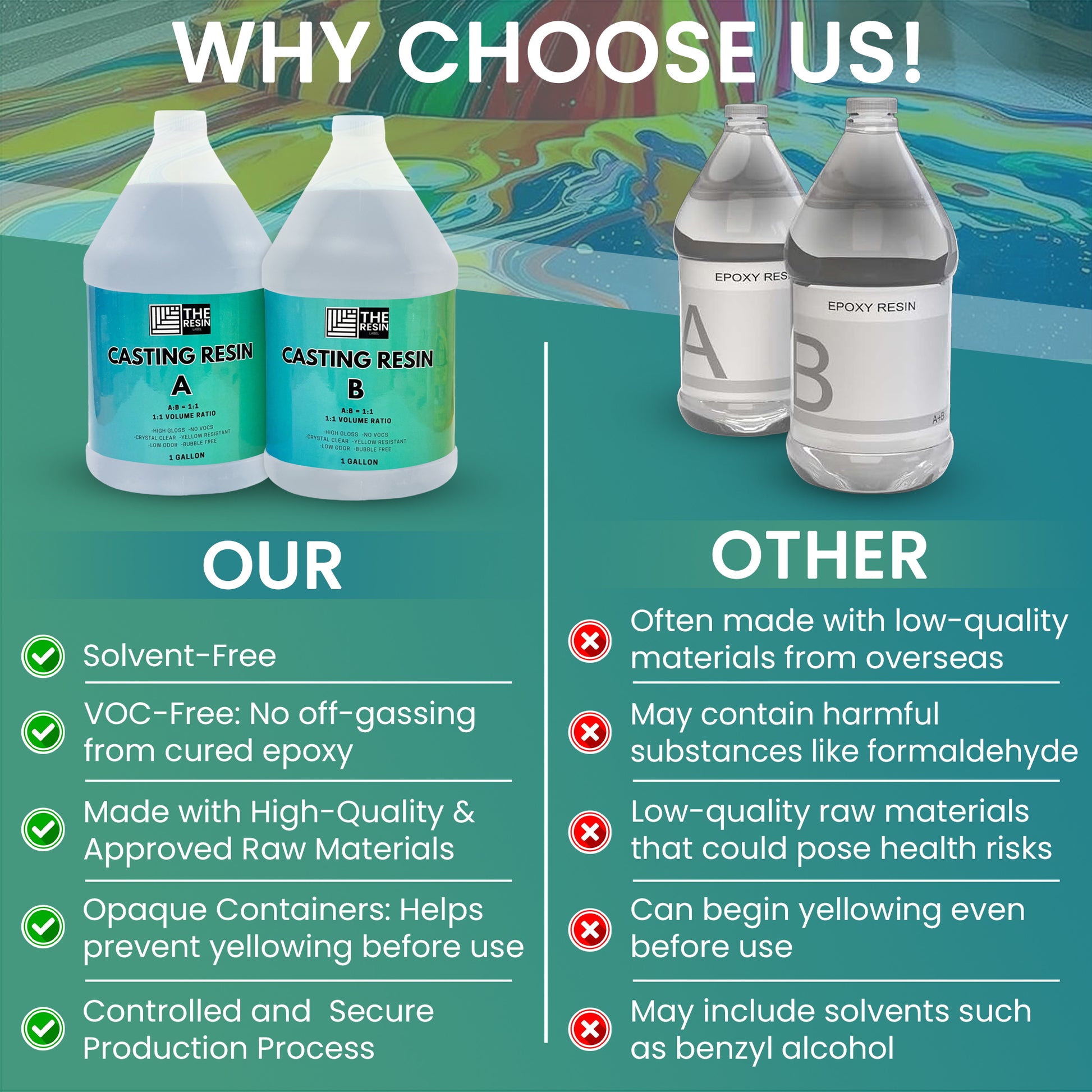 Go big with our 2-gallon pro resin kit – crystal clear, low-odor, and perfect for batch casting and deep trays (up to 1 inch per layer).