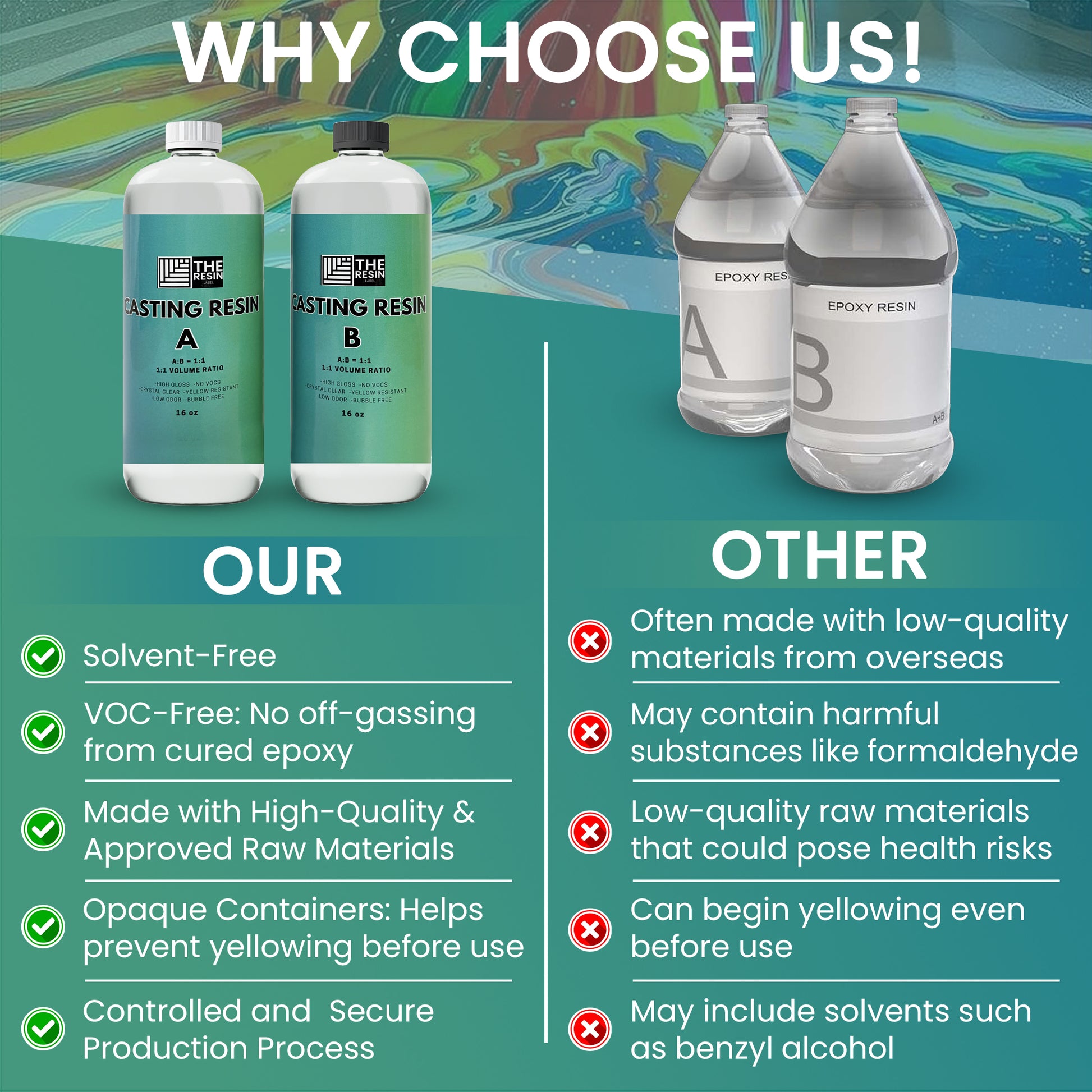 of crystal-clear, low-odor casting resin – perfect for preserving florals, trays, and molds up to 1 inch deep.
